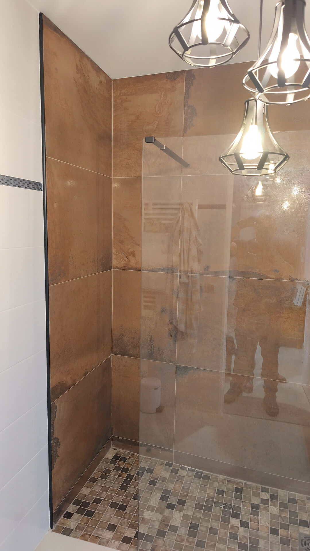 Création de salle de bain avec douche à l’italienne, caniveau et paroi de douche | M.M. Climatisation & Plomberie
